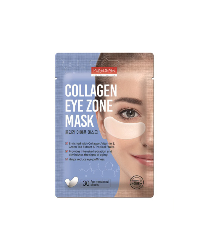 PureDerm Masca Ochi cu ColagenMasca intesiva pentru zona de contur ochi cu Vitamina E, Colagen si Ceai Verde.Are efect antirid, de reducere a cearcanelor, a pungilor de sub ochi, a iritatiei. Deasemena imbunatateste elasticitatea si flexibilitata pielii.Mod de utilizare: dupa demachierea tenului aplicati cat mai fix masca sub ochi, asigurandu-va ca nu sunt bule de aer sub ea. lasati sa actiuneze 15-20 minute. Recomandat pentru toate tipurile de ten si pentru utilizare indelungata pentru efecte optime.Recomandare: Plicul are inchidere zip-lock. Asigurati-va ca ambalajul este inchis ermetic intre utilizari, pentru a preveni deshidratarea mastilor.Un plic contine 30 buc masti..