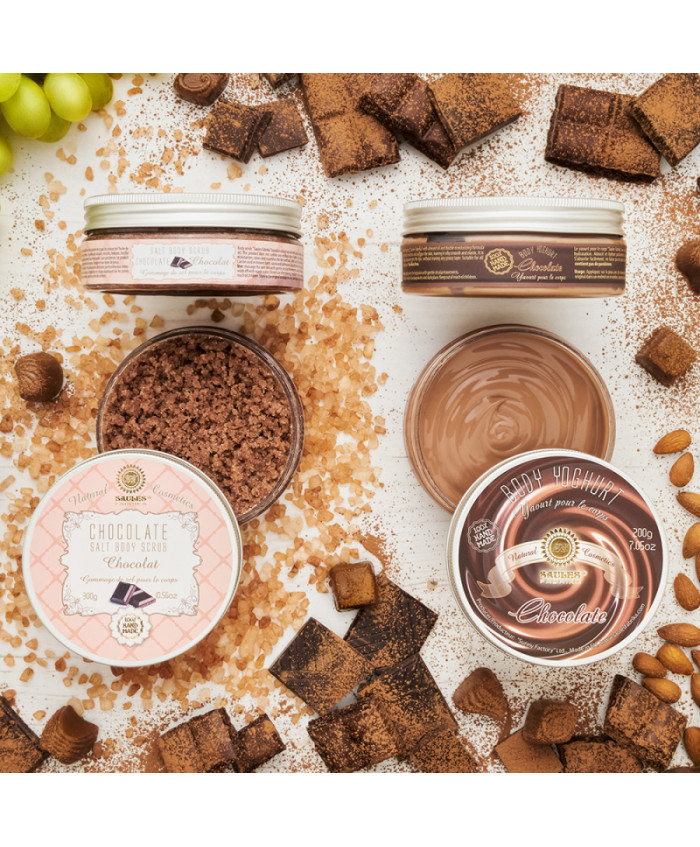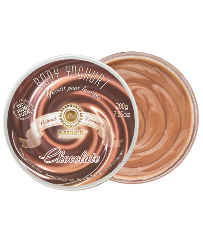 Saules Iaurt de Corp cu Ciocolata 200gSaules iaurt de corp cu Ciocolata este o crema ce combina uleiul de migdale intr-o formulă dublu hidratantă, perfecta pentru piele, lăsând-o moale și mătăsoasă. Produsul se absoarbe usor, fara a lasa un luciu uleios.Ingrediente active: Ulei de migdale cu o formula dubla hidratanta.Potrivit pentru toate tipurile de piele.Produs: 100% hand made.Fara parabeni.Uleiul de migdale dulci are un bun efect de hrănire, catifelare și întinerire, protejează pielea de razele UV, în timp ce betaina oferă pielii netezime, suplețe și elasticitate.Uleiul de migdale promovează întinerirea pielii, elimină primele semne de îmbătrânire. Reface bariera naturală a pielii, saturează celulele cu oxigen și îmbunătățește circulația sângelui.Aroma caldă a ciocolatei calde te invalui si creeaza o atmosferă delicioasă de magie. Stimuleaza hormonul antistress responsabil de secretia de endorfine.Mod de utilizare: aplicați produsul pe pielea curata si exfoliata in prealabil, masați cu mișcări circulare moi până când este complet absorbit.Ingrediente: Apa, izononanoat de izononil, ulei de Prunus Amugdalus Dulcis, glicerina, acrilat de hidroxietil, copolimer de acriloildimetil taurat de sodiu, parfum, betaină, CI 16255, CI 19140, CI 28440...