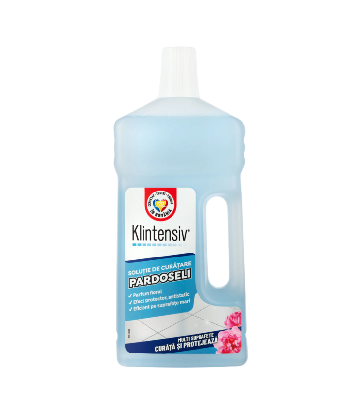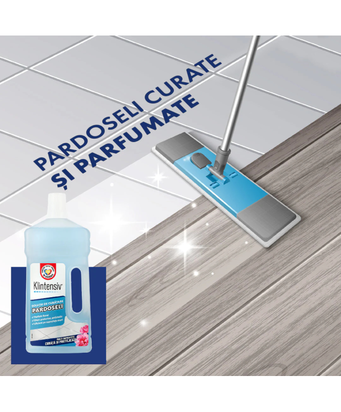 Klintensiv Solutie Curatare Pardoseli 1lDetergent parfumat și concentrat pentru întreținerea zilnică a tuturor tipurilor de pardoseli: ceramică, porțelan, marmură, granit, piatră naturală, mozaic, linoleum, PVC, suprafețe laminate/lavabile. Îndepărtează eficient murdăria fără a agresa materialele sensibile și lasă un parfum intens, de lungă durată. Fără clătire.BeneficiiUniversal: delicat cu suprafețele, dur cu murdăriaFără clătire – cureți mai repede, cu efort redusParfum persistent – prospețime de duratăPotrivit pentru acasă, birouri, hoteluri, spații comerciale, cliniciConcentrat economic – consum redus, randament mareDomenii de utilizareÎntreținerea și curățarea curentă a pardoselilor din: ceramică, porțelan, piatră naturală (marmură/granit), mozaic, linoleum/PVC, laminate lavabile.Instrucțiuni de utilizareDiluați în apă rece/călduță:Întreținere zilnică: ~ 0,5–1% (≈ 5–10 ml/L).Murdărie accentuată: până la 1–2% (≈ 10–20 ml/L).(Ajustați concentrația conform instrucțiunilor de pe etichetă.)Aplicați cu mop/lavetă din microfibră, bine stors(ă).Ștergeți uniform; nu necesită clătire.Lăsați să se usuce complet înainte de trafic intens.Compatibilitate & recomandăriPotrivit pentru majoritatea pardoselilor lavabile, inclusiv piatră naturală.Faceți test pe o zonă puțin vizibilă înainte de prima utilizare.Evitați excesul de apă pe pardoseli sensibile (ex. lemn/laminat); folosiți mop bine stors.Nu utilizați pe suprafețe nelavabile/poroase netratate sau cu finisaje deteriorate.Avertizări & precauțiiNu amestecați cu alte produse de curățare.Utilizați în spații bine ventilate.Evitați contactul cu ochii; în caz de contact, clătiți imediat cu multă apă.A nu se lăsa la îndemâna copiilor.Nu ingerați.Siguranță în utilizareNu utilizați produsul dacă este expirat sau în condiții diferite de cele recomandate pe etichetă/fișa tehnică.Ambalare & logisticăFlacon: 1 litru — 12 bucăți/baxDurabilitate & depozitareDepozitați în recipientul original, bine închis, la 5–30°C, ferit de îngheț și de soare direct.Folosiți în intervalul indicat de PAO/lot de pe ambalaj...